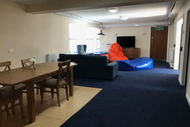 Communal lounge, kitchen, dining room and sensory room