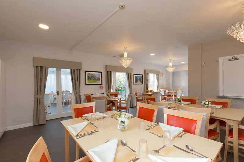Kingscourt is a three-storey building with two staircases and a passenger lift to ensure all residents, staff and visitors can easily move around the home. There are communal areas on the ground floor, including two lounges, a dining room and a conservatory where residents may relax and enjoy the home. There is a small garden at the back for Residents who wish to sit outside on lovely sunny days. There are also car parking spaces at the front.