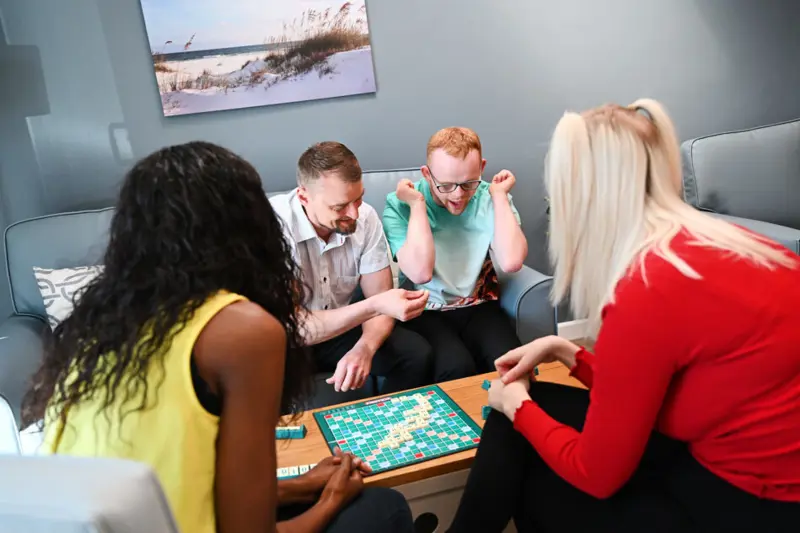 The people we support, aged from their mid-20s to early 40s, are encouraged to build independence and pursue their aspirations. They enjoy activities such as swimming, trampolining, theatre, live shows, and socialising, with a shared enthusiasm for arts, crafts, and cooking.