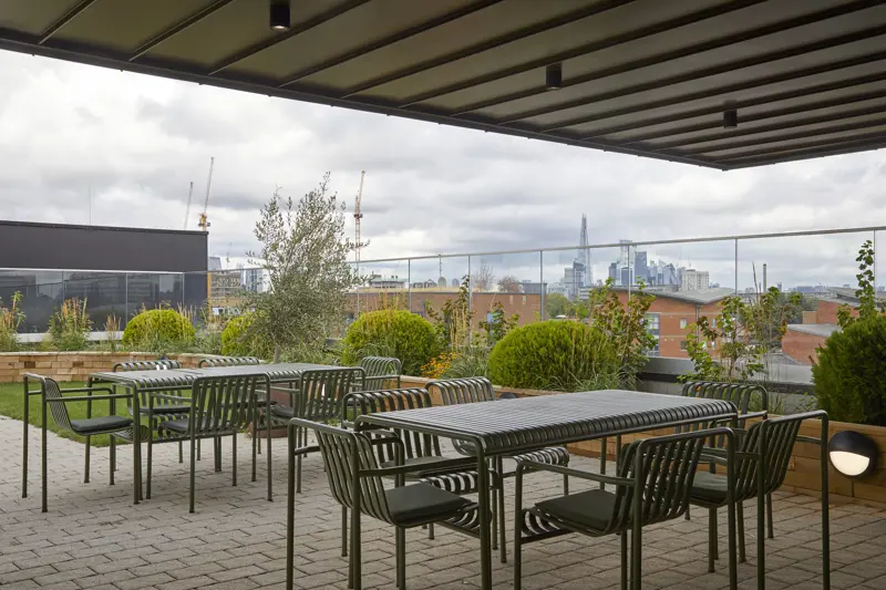 The facilities make life comfortable and enjoyable, allowing people to live safely and as they choose; the home features tastefully decorated lounge and dining areas, a pub, a wellness suite, and a stunning roof terrace boasting a bistro café and spectacular views of the London skyline.