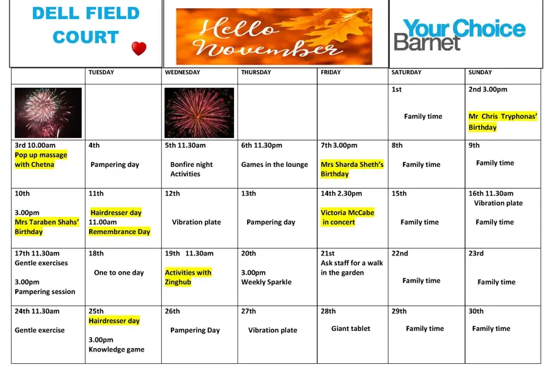 Dell Field Court is a warm and welcoming care home in Finchley offering residential and dementia care within cosy surroundings. The kind and enthusiastic care team pride themselves on building relationships with each of our residents, getting to know everyone’s individual personalities and preferences.