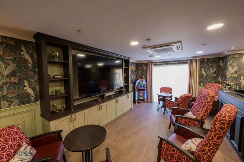 The home is divided into suites – collections of bedrooms with a dining room and lounge. Creating smaller communities makes it easier for residents to get to know each other and keeps hustle and bustle to a minimum. The home also has a café, cinema room and a hair and beauty salon, as well as extensive gardens and outdoor spaces.