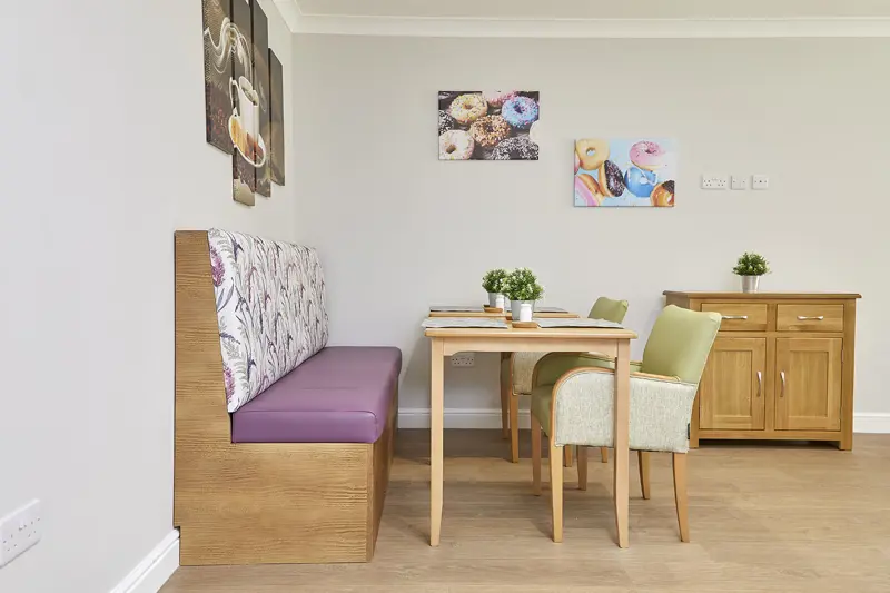 All of our bedrooms are larger than average size with modern furniture and wet rooms. We actively encourage new service users to bring in their own furniture if they wish and to decorate their rooms to their own choice and taste. Each unit has a lounge with a television and a quite lounge. The dining rooms are modern and well designed.