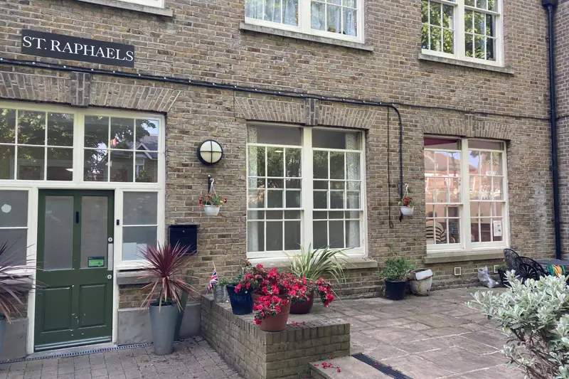 St Raphael's is in a quiet road, just off the high street. It is set in spacious, well maintained grounds, with plenty of areas to walk, sit or take part in outdoor activities. There is a peace garden at the rear of the grounds which offers a place of quiet and reflection.