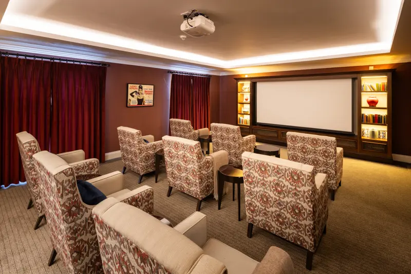 Our Cottingham Manor luxury care home includes facilities such as two in-house bars with a barista station, restaurant-standard dining rooms, a full beauty and hairdressing salon, a cinema, and outdoor terraces on each floor.
