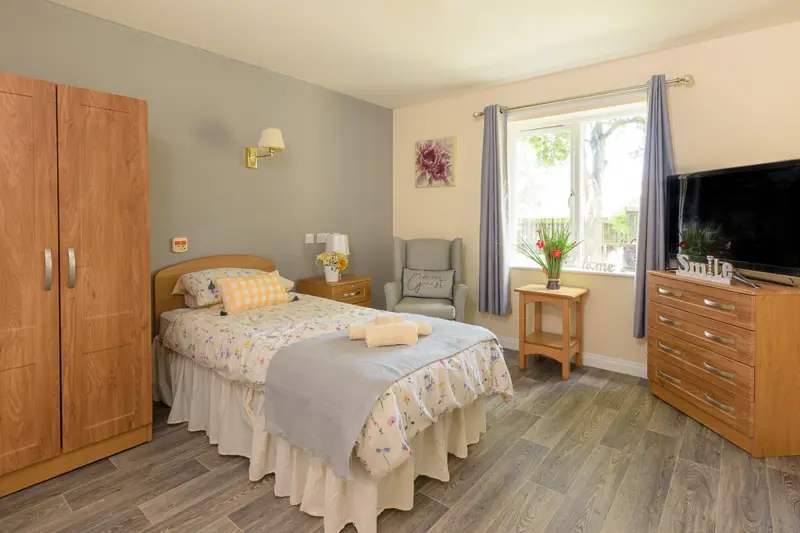 Each of our 61 ensuite bedrooms some of which are suitable for double occupancy is furnished to a high standard offering Residents the chance to enjoy comfort and tranquillity. At Grosvenor Park providing independence and choice is very important – One reason we try and encourage residents to personalise their rooms with their own belongings to help them feel at home.