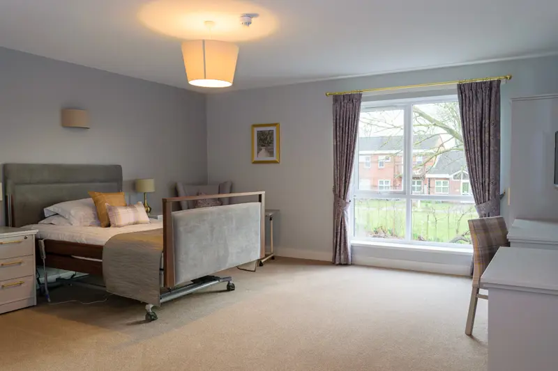 We are a single storey building, our rooms are ground floor rooms with wheelchair access. All of our rooms are en-suite and residents can feel even more at home here if they want to use their own furniture. Pets are welcome throughout the home and in rooms. We have free parking available on site.