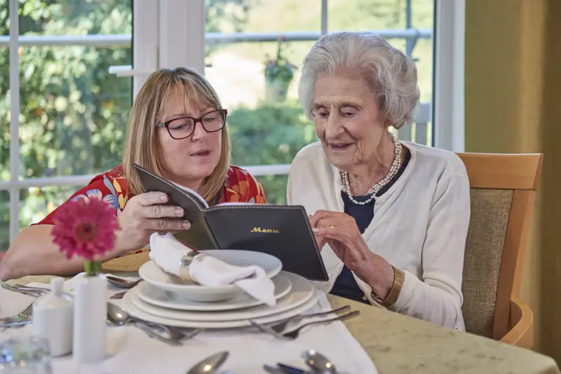 Hartfield House Care Home is an elegant and spacious place to live well, from our thoughtfully designed home that has a variety of beautiful living and dining areas throughout, to every modern and practical amenity. Each bedroom has an en suite wetroom and there are plenty of varied spaces throughout to relax, socialise, enjoy delicious chef-prepared meals or indulge in hobbies. There is also a cinema, hairdressing and nail salon and a café – making it a true community. A private dining room is also the perfect place for special family celebrations and the lovely landscaped gardens are perfect for walking, gentle exercise or even gardening.