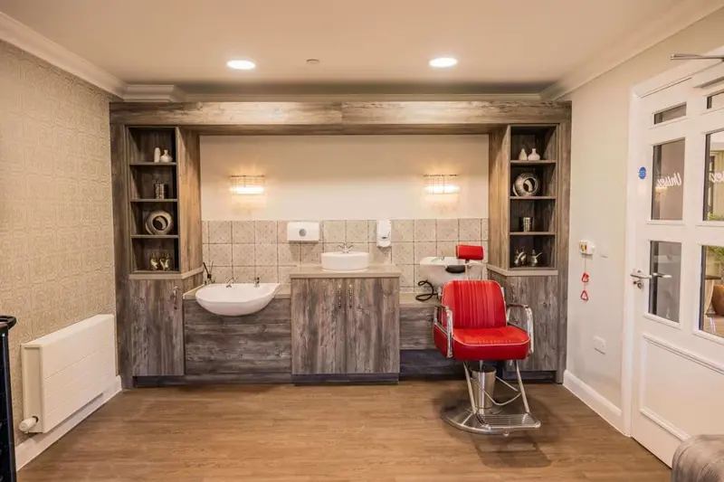 The home is divided into suites – collections of bedrooms with a dining room and lounge. Creating smaller communities makes it easier for residents to get to know each other and keeps hustle and bustle to a minimum. The home also has a café, cinema room and a hair and beauty salon, as well as extensive gardens and outdoor spaces.