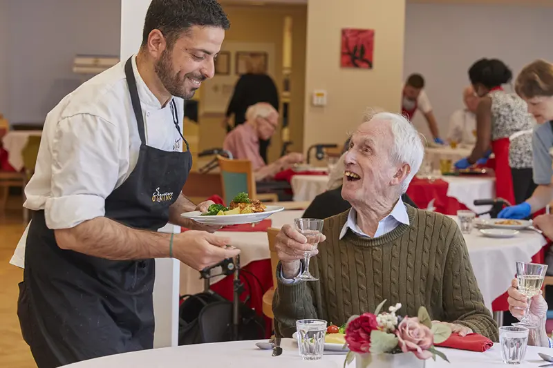 Our care team ensures that life for residents in our Surbiton home is comfortable and fulfilling. The Home is beautifully designed and informal, with spacious lounges where residents can enjoy activities and musical performances or find a cosy nook to read or chat with visitors. A visit to the hair salon or physiotherapy or joining friends in the café-bar for a drink all enhance residents' wellbeing. Each resident has a large, en-suite bed-sitting room for enjoying time alone or with family.