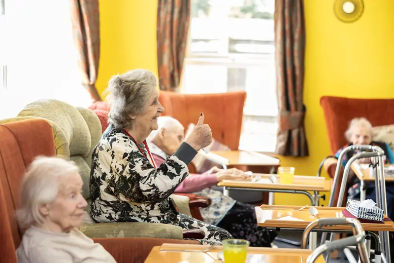 The accommodation is split across two floors; a lift allows access to all floors for the residents to use. On the ground floor, the home has a communal lounge, beautifully presented dining room and bathroom facilities. Similar spaces are available on the first floor, allowing for multiple spaces for residents to spend their time, take part in activities and enjoy their day.