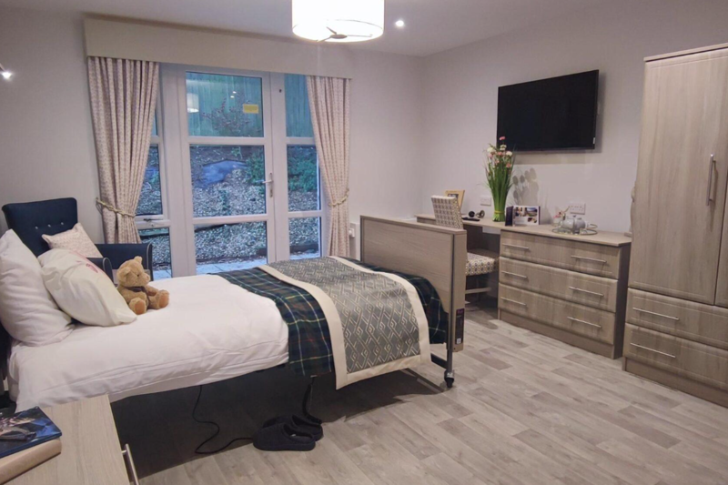 Our luxury en-suite rooms have been thoughtfully designed to provide a home-from-home environment. Bedroom furniture, a profiling bed, standing aids, a TV, a Nurse Call System, and an accessible wet room are included. Our charming en-suite bedrooms have been carefully designed to help our residents feel secure and comfortable. We feel it is important to provide a space where people can personalise their surroundings, welcome friends and family, and truly call home.