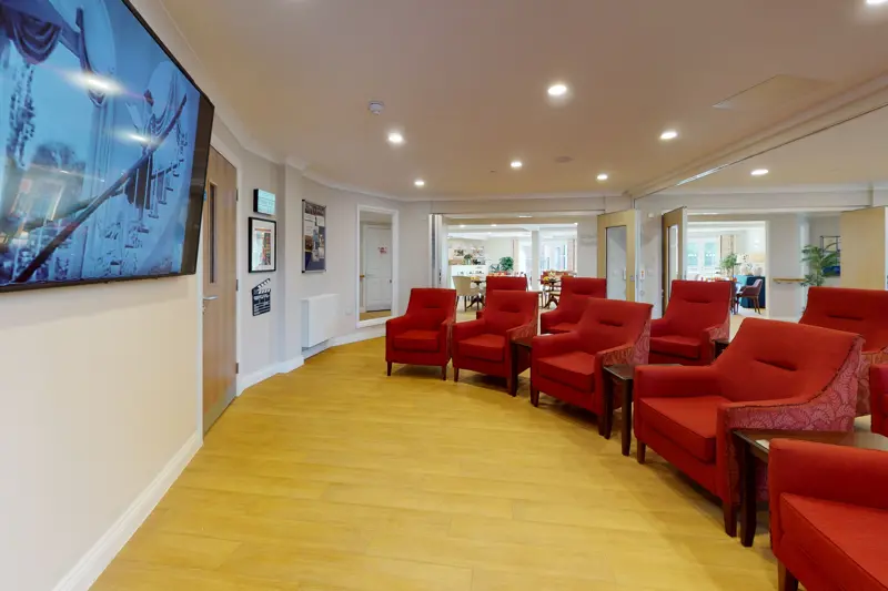 Situated in the middle of Otterbourne and Chandlers Ford, Brendoncare Otterbourne Hill is an airy, spacious care home providing quality nursing, respite and dementia care. As one of the five popular Brendoncare care homes in Hampshire, residents and their loved ones can expect the highest quality care and ultimate peace of mind. Our 64 ensuite bedrooms are arranged into smaller households with 16 bedrooms across 4 households, offering a family-like environment. All bedrooms have a 24-hour nurse call system and ensuite shower rooms, which are fully accessible for wheelchairs. There are also assisted bathrooms close to all the bedrooms. Our rooms are decorated to a very high standard, but residents are welcome to bring their own furniture and belongings to personalise their rooms, making it feel familiar and homely. our modern, airy, spacious care home supports people with a variety of needs including those living with dementia. Our building incorporates dementia-friendly features such as lighting, contrast of colours, orientation and security features to help residents feel secure and find their way around safely indoors and out. We offer an extensive range of comfortable lounge and elegant dining areas, a winter garden a thriving community space for activities and gatherings, hair salon, a library offering a wide selection of books, café and shop. Patios overlooking our large landscaped well-stocked gardens provide ideal places to entertain guests or to relax and soak up the sunshine